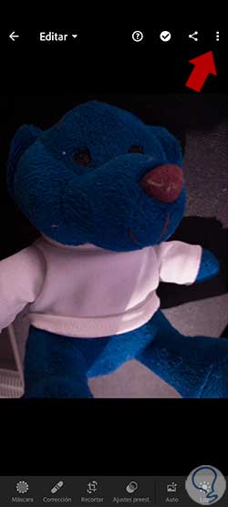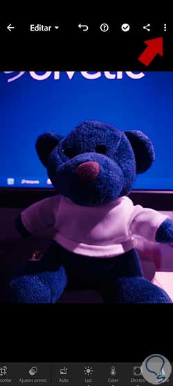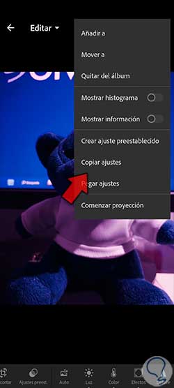 Una vez tenemos sus ajustes ya creados podemos llevarlos a otra imagen. Para ello pulsamos en su menú desplegable de los tres puntos superiores.