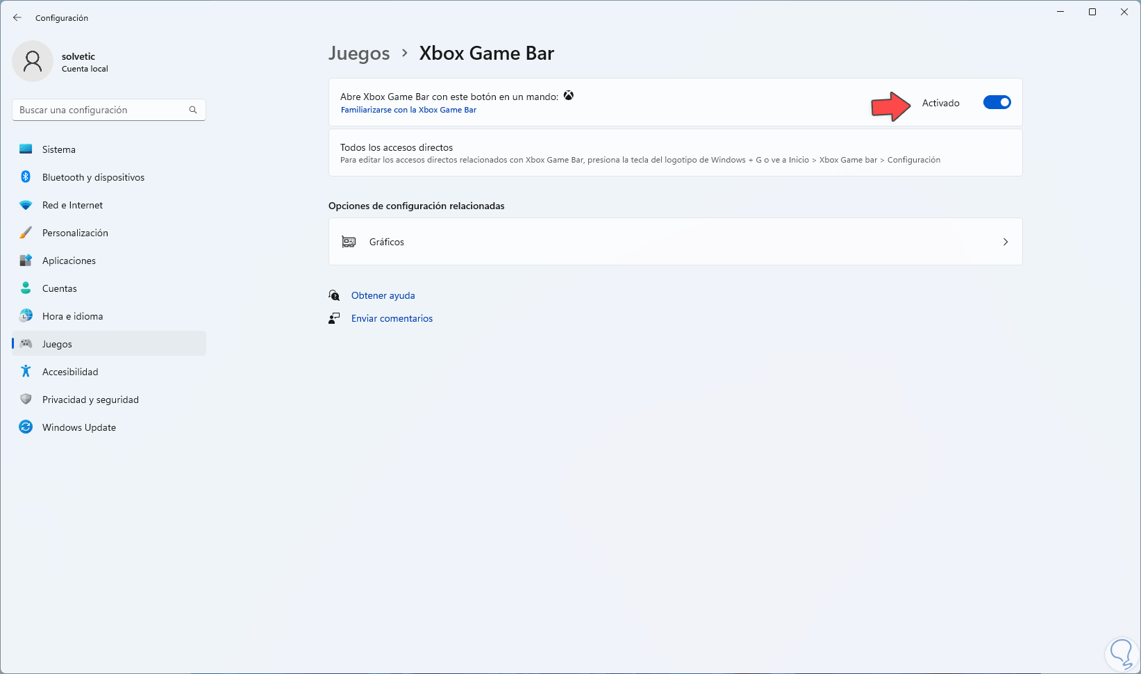 Damos clic en "Xbox Game Bar" para ver lo siguiente: