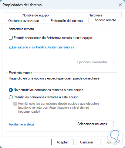 2 Configurar Escritorio Remoto Windows 11 desde Panel de control