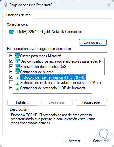 En la ventana emergente seleccionamos "Protocolo de Internet versión 4":