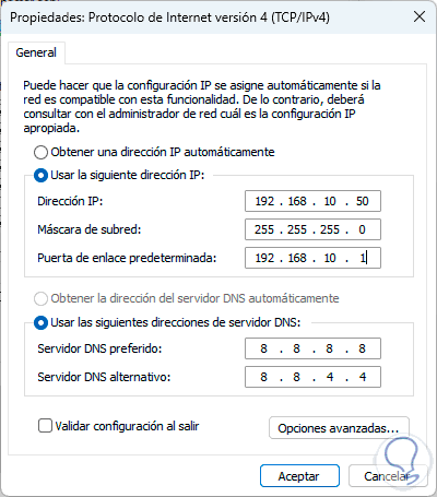 3 Configurar Escritorio Remoto Windows 11 configurar IP estática