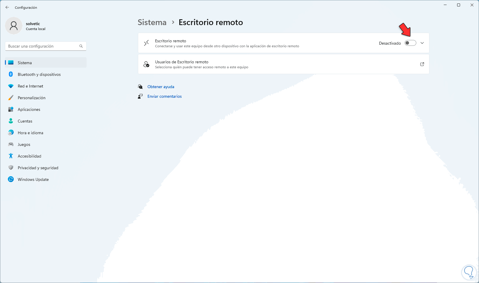 Solvetic explicará en detalle la forma para configurar el Escritorio remoto en Windows 11 y así tener la certeza de una conexión segura cuando sea necesario.
