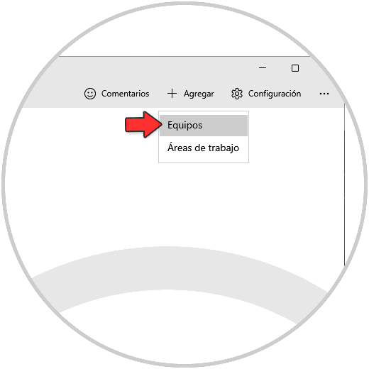 En la parte superior damos clic en "Agregar" y seleccionamos "Equipos":
