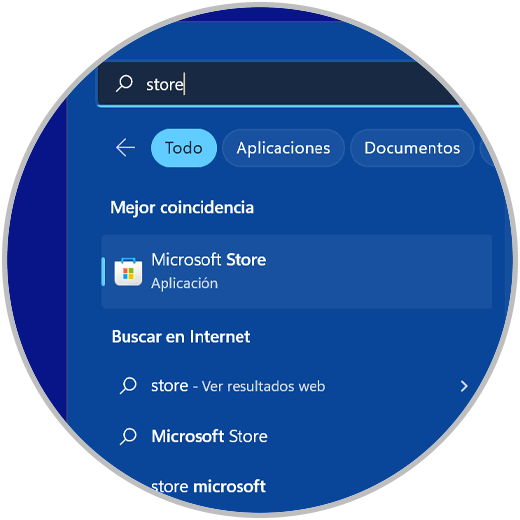 Abrimos Microsoft Store desde el menú inicio de Windows haciendo una búsqueda.