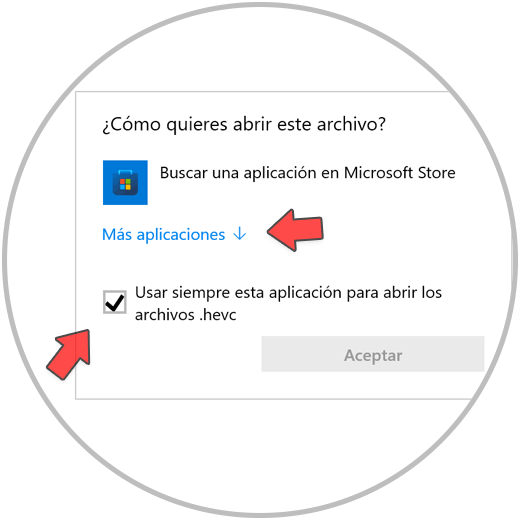 Pulsaremos y activamos la opción de “Usar siempre esta aplicación para abrir los archivos .hevc”