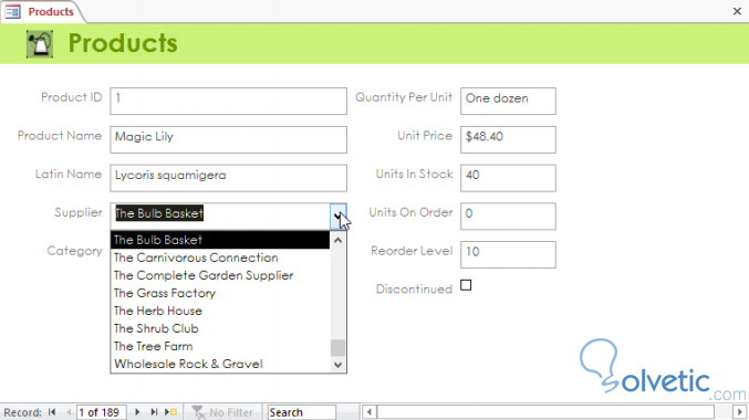 Aquí si hacemos click en alguna de las listas desplegables podremos observar los datos cargados y asociados a ese control: