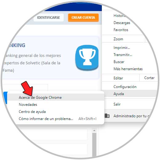 Para actualizarlo abrimos Google Chrome y vamos a "Personalizar y controlar Google Chrome - Ayuda - Acerca de Google Chrome":