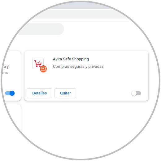 Para desactivar una extensión pulsamos sobre su interruptor: