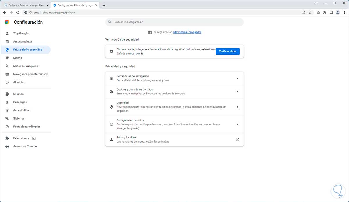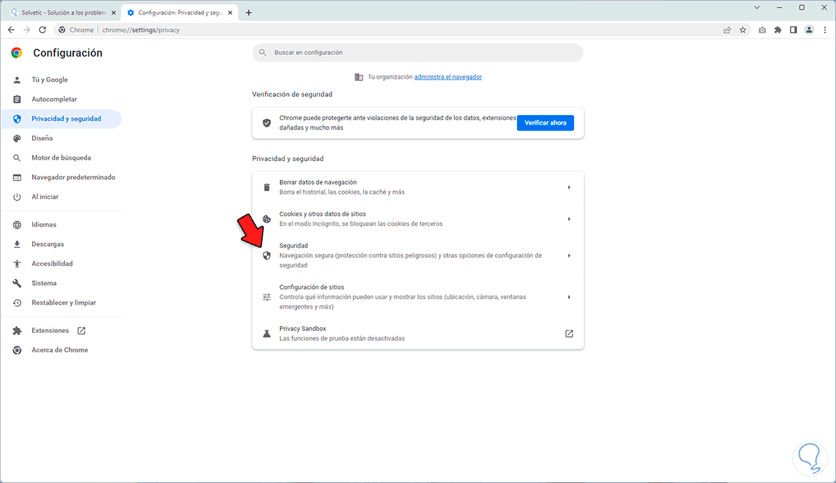 En "Privacidad y seguridad" damos clic en "Seguridad":