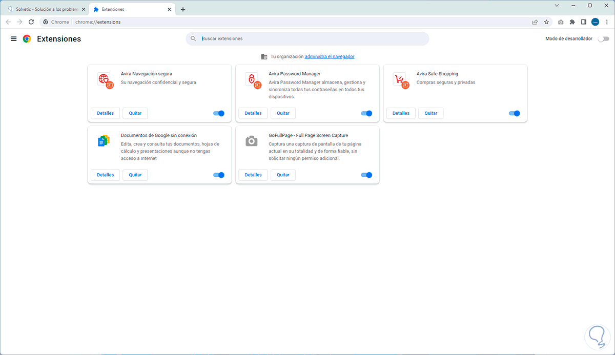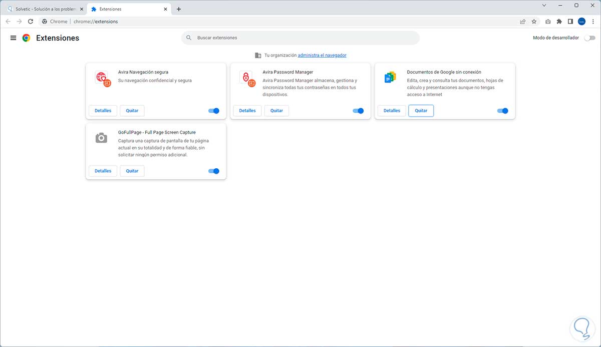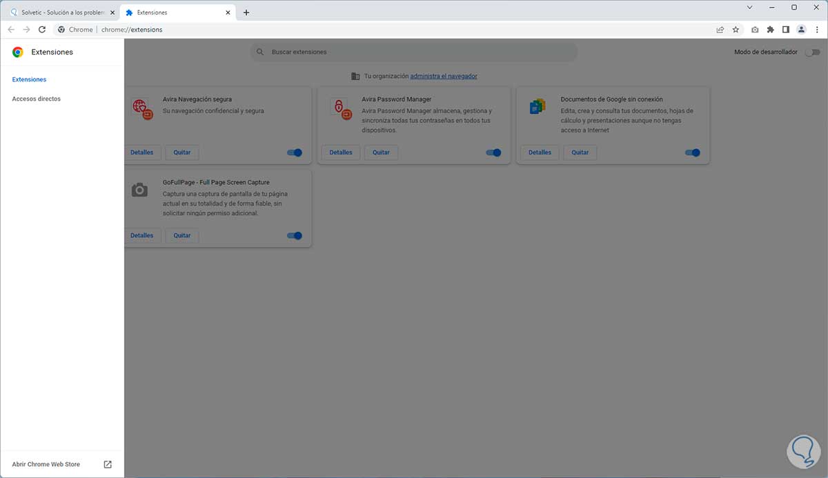 Veremos las diferentes extensiones instaladas en Google Chrome: