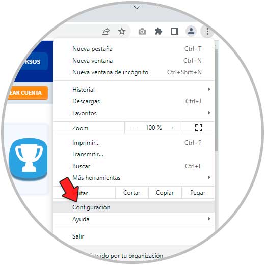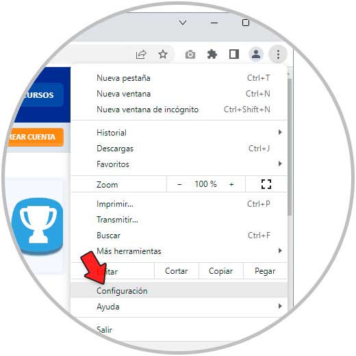 Podemos desactivar esta opción abriendo Google Chrome y dirigiéndonos a "Personalizar y controlar Google Chrome - Configuración":