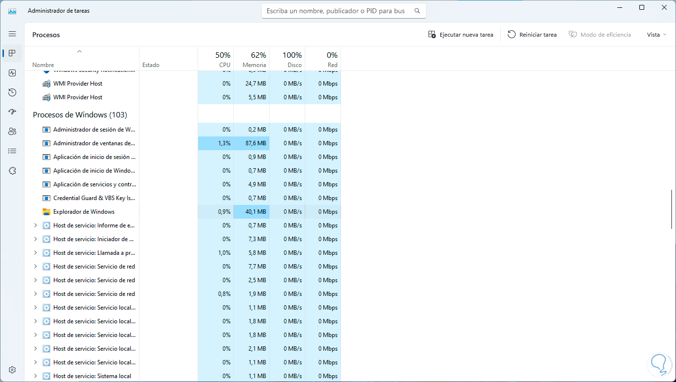 Damos clic en "Reiniciar tarea" en la parte superior y por un momento no se tendrá acceso a los elementos, esperamos que se cargue de nuevo el Explorador de Windows con sus respectivos componentes.