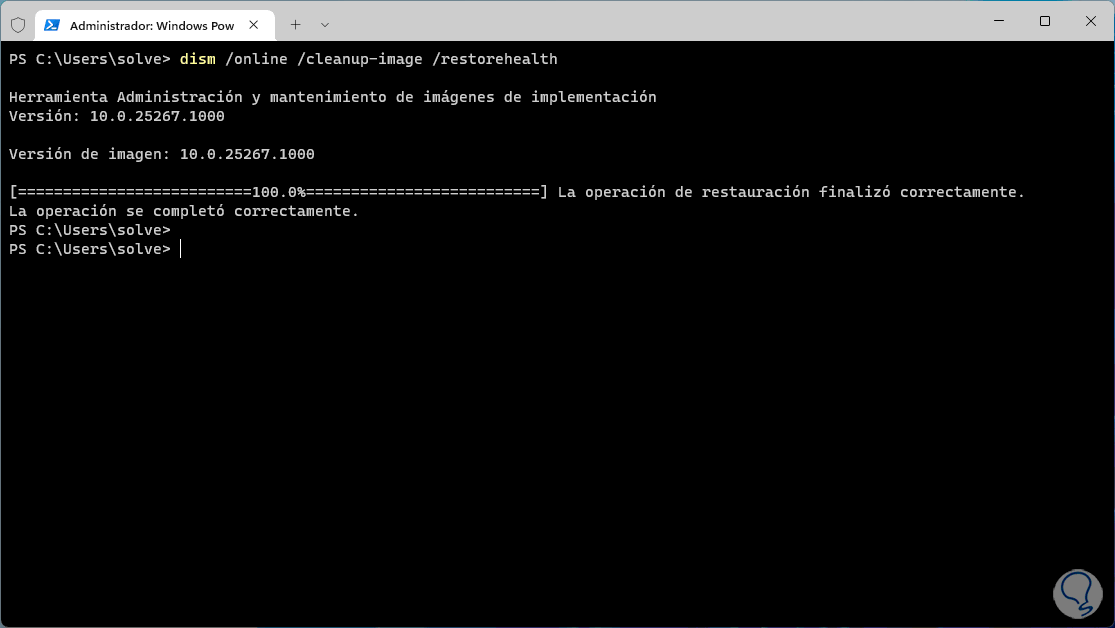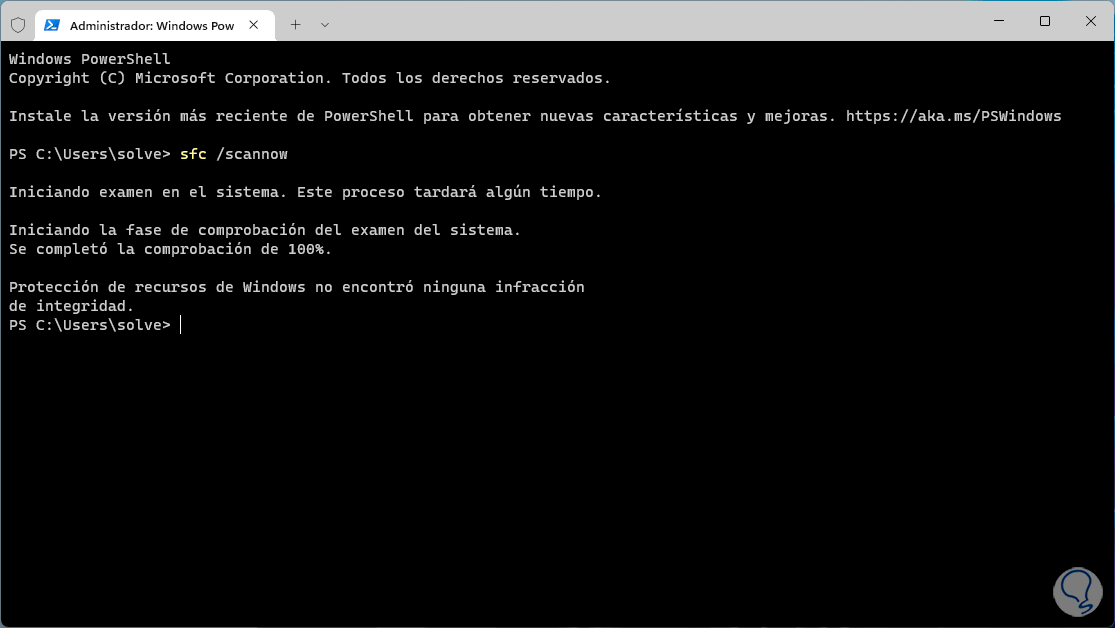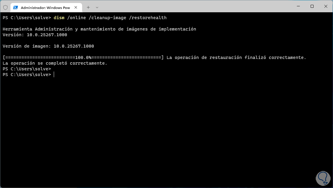 Desde la Terminal o consola del símbolo del sistema podemos ejecutar una serie de comandos para revisar la integridad del sistema, es posible que la causa del error sea algo a nivel del sistema de archivos de Windows 10/11 o bien de la imagen del sistema.