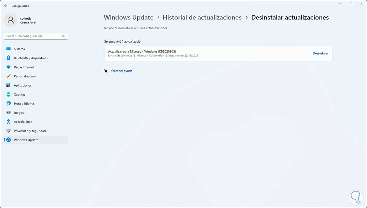 Sera posible desinstalar alguna actualización que afecte la barra de tareas: