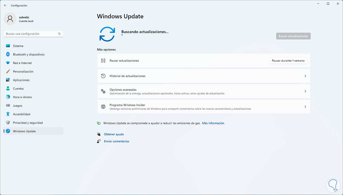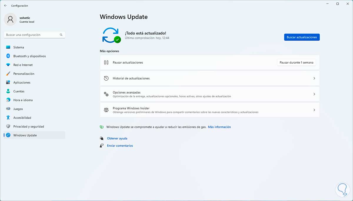 Damos clic en "Buscar actualizaciones" para comprobar si hay disponibles y puede que una nueva actualización ayude a corregir el problema: