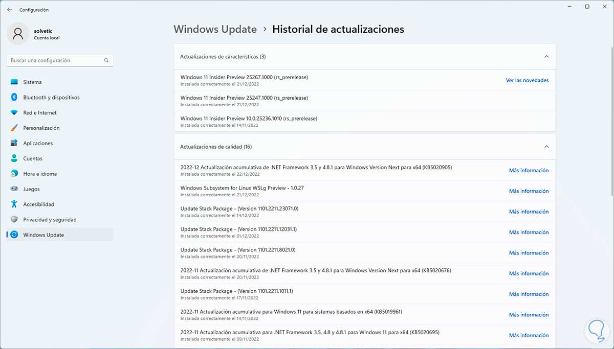 Para administrar las actualizaciones en Windows vamos a "Inicio - Configuración - Windows Update":