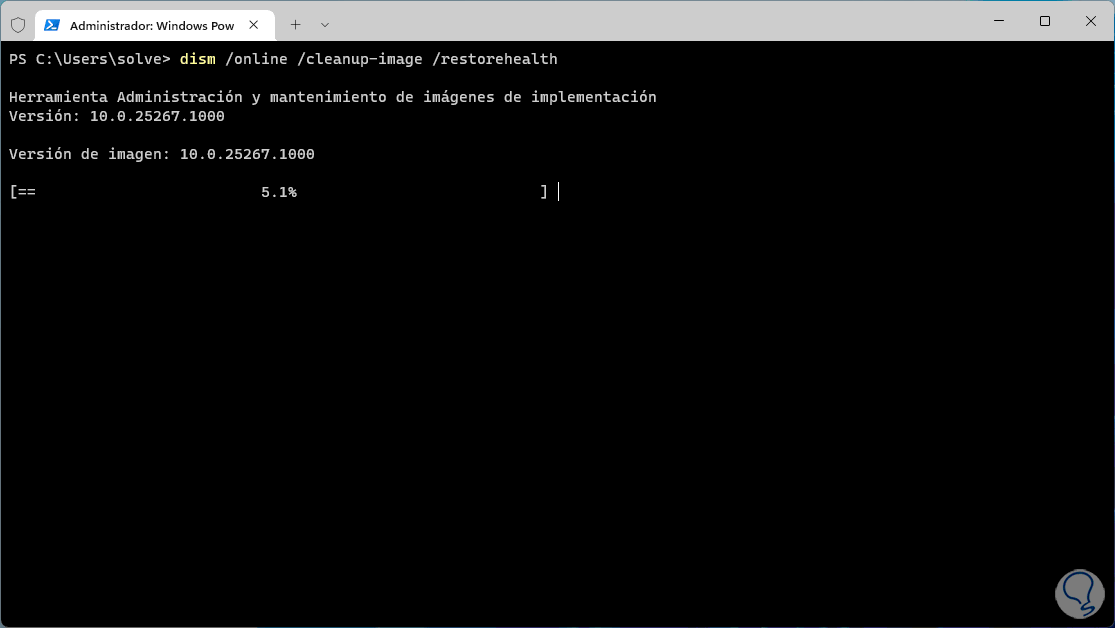 DISM (Deployment Image Servicing and Management) se encarga de realizar un análisis en detalle a la imagen del sistema operativo para descartar errores.