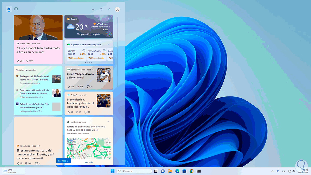 En Windows 11 da clic en el icono de Widgets para acceder a su contenido: