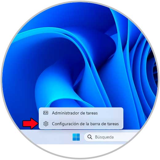 Damos clic derecho en la barra de tareas y seleccionamos "Configuración de la barra de tareas":