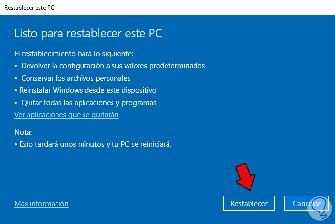 Es un método extremo, pero si ninguno de los pasos anteriores permite ver los iconos en la barra de tareas es necesario hacerlo y es restablecer el PC a su estado original.