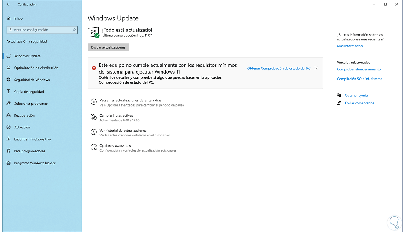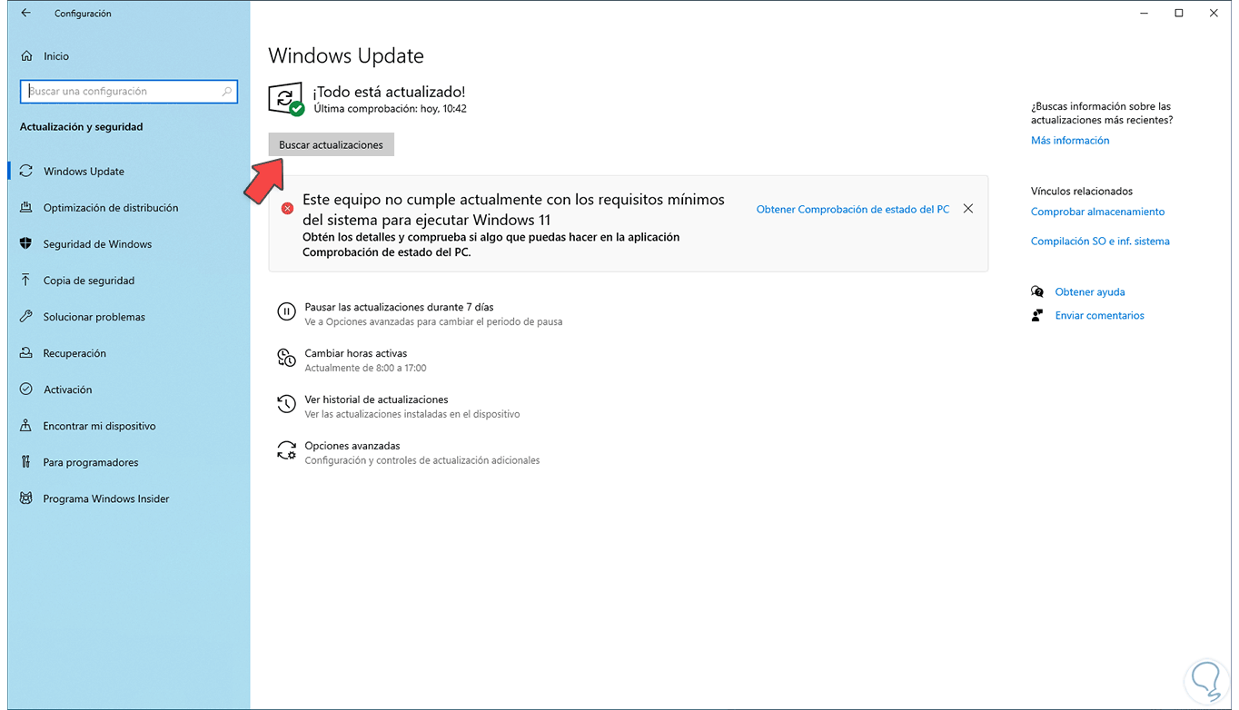 Damos clic en "Buscar actualizaciones" y esperamos que se descarguen e instalen las actualizaciones: