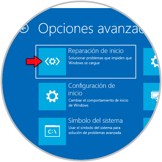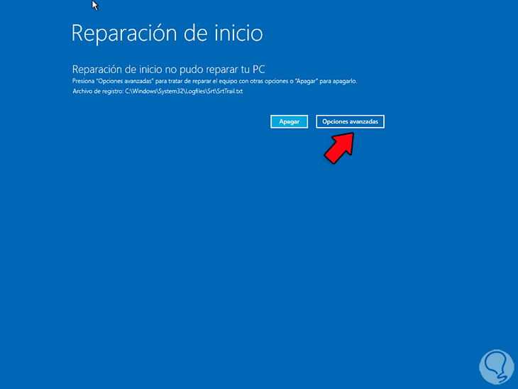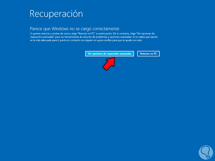 Damos clic en "Ver opciones de reparación avanzadas" para tener acceso a lo siguiente: