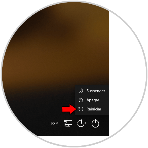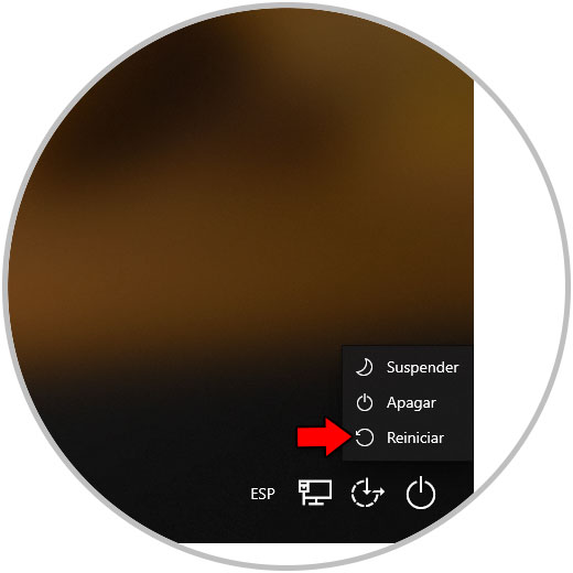 Para este modo reinicia Windows 10 en modo avanzado dando clic en "Reiniciar" pulsando la tecla Shift: