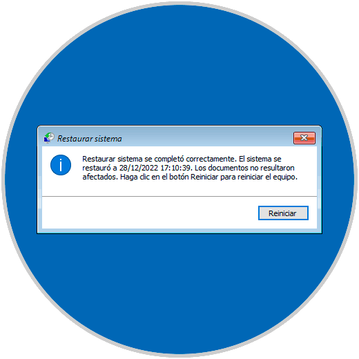 Damos clic en "Reiniciar" para ver las opciones a usar: