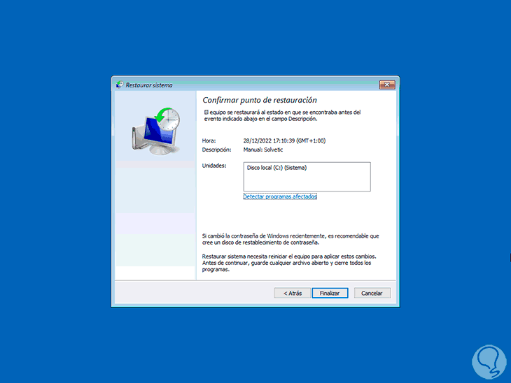 Restaurar el sistema implica volver el equipo a un periodo de tiempo, llamado Punto de restauración, donde todo trabajaba de manera correcta, esto no afecta nuestros archivos y es ideal para recuperar el funcionamiento del sistema y en este caso de la pantalla.