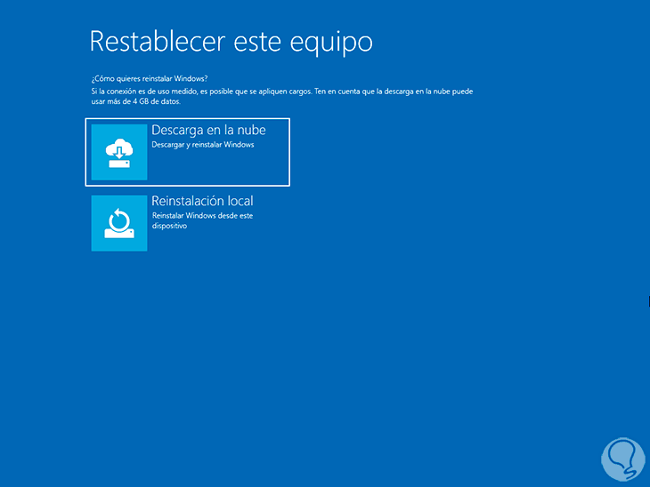 Da clic en "Restablecer" para que se ejecute el proceso de restablecimiento de Windows 10: