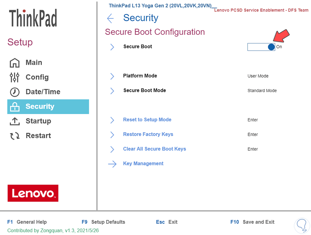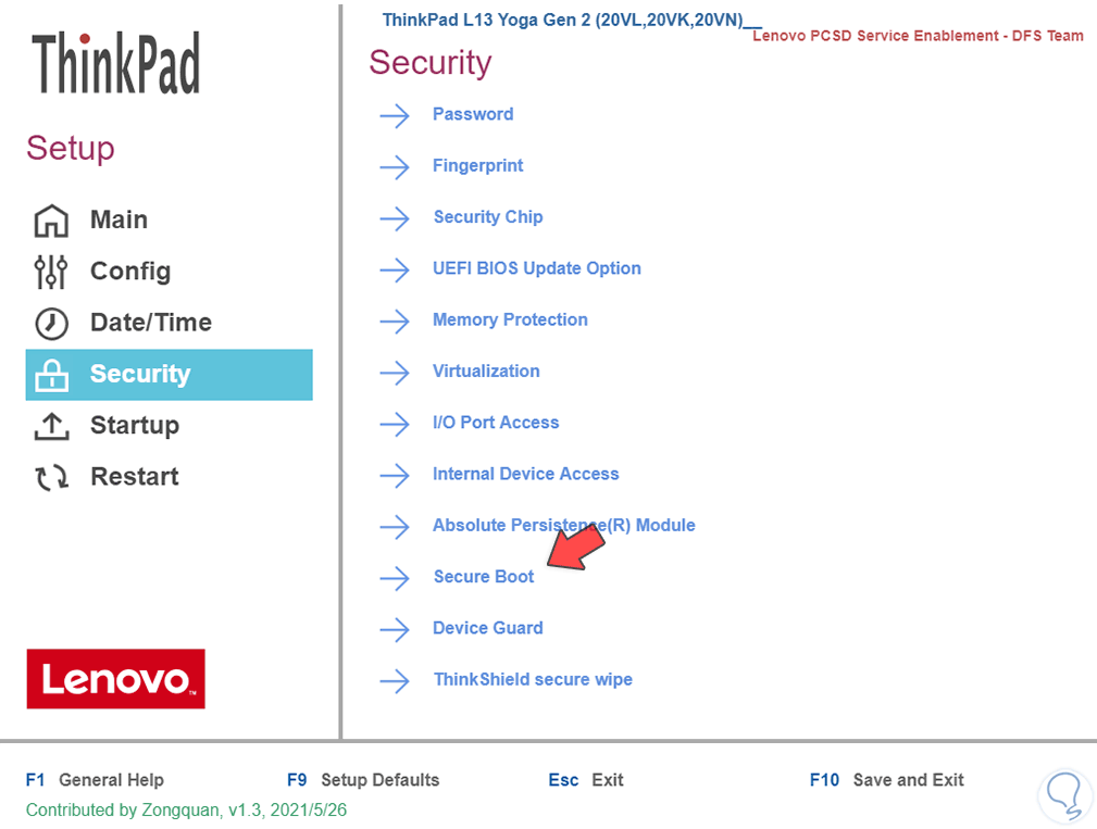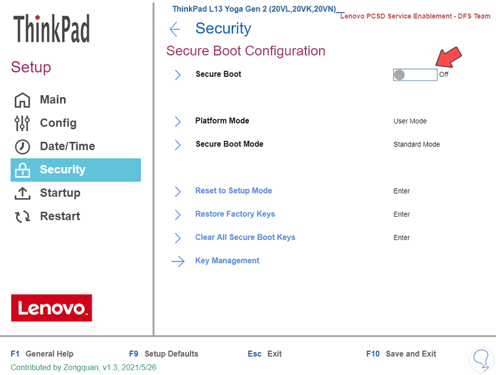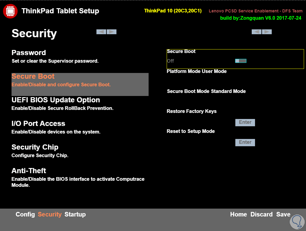 Damos clic en "Security Boot" para ver lo siguiente:
