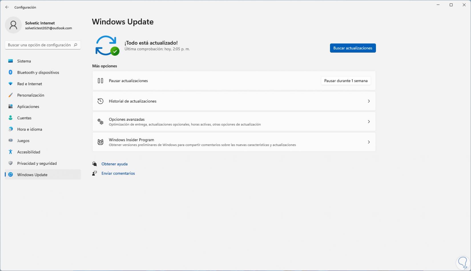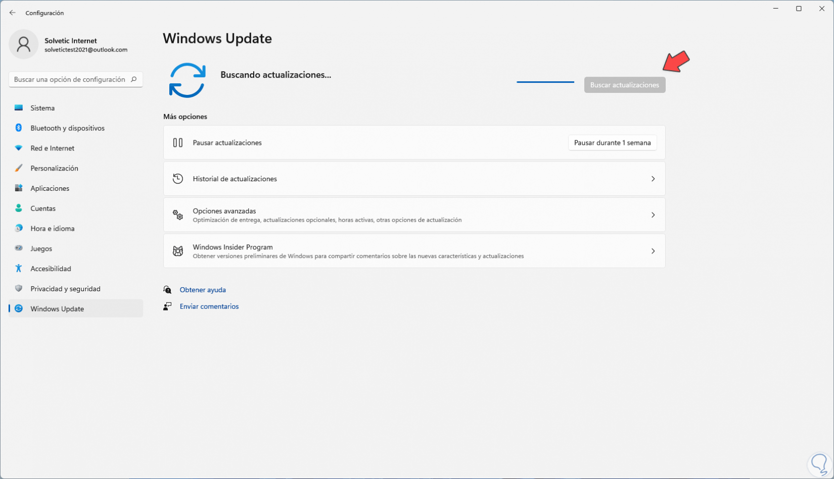 Damos clic en "Buscar actualizaciones" para ver si existen actualizaciones disponibles: