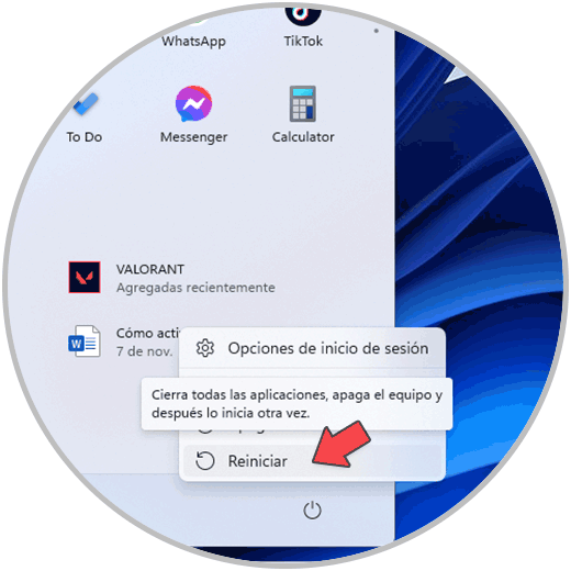 Naturalmente el primer paso será activar el TPM el cual se debe hacer directamente en la placa base, para ello reiniciamos Windows 11: