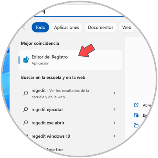 Para ello abrimos el Editor de registros: