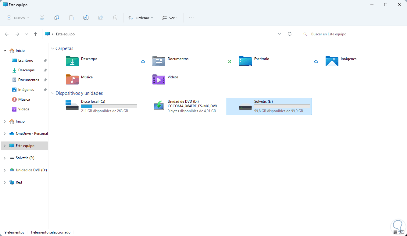 Abrimos el Explorador de archivos para comprobar las unidades visibles: