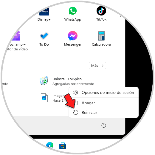 Ahora damos clic en "Reiniciar":