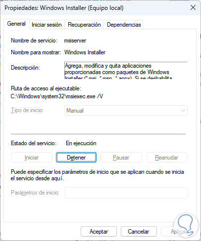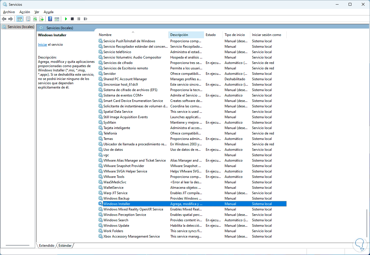 Damos doble clic sobre el servicio "Windows Installer":