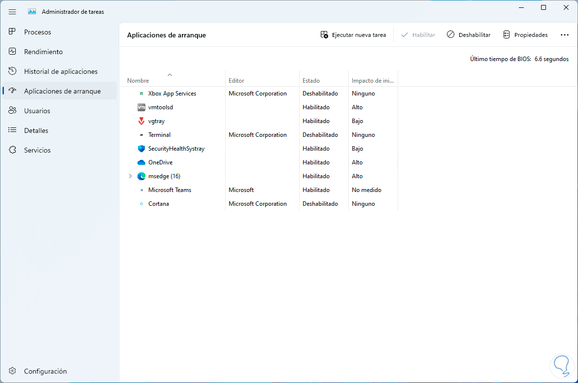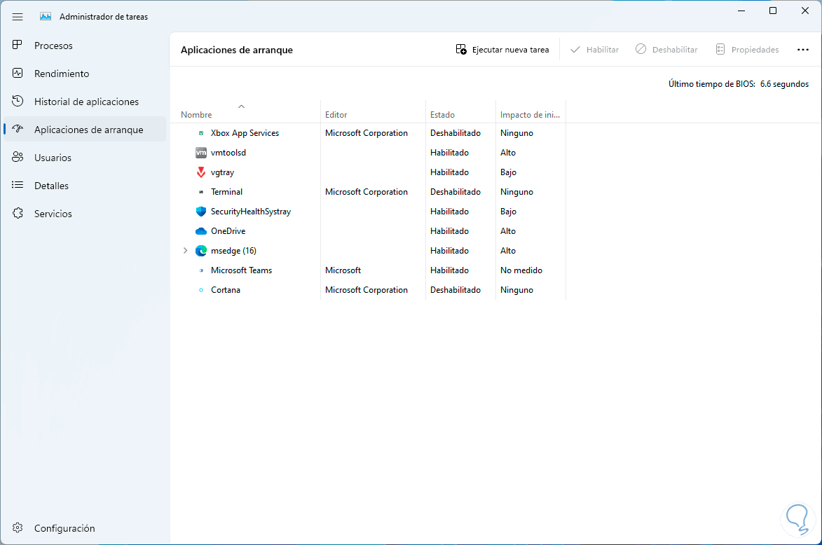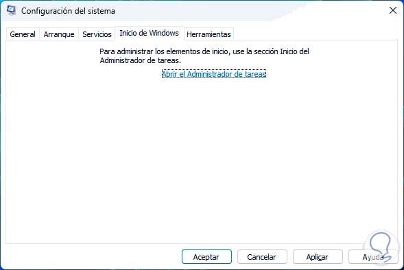 En la pestaña "Inicio de Windows" damos clic en "Abrir el Administrador de tareas":