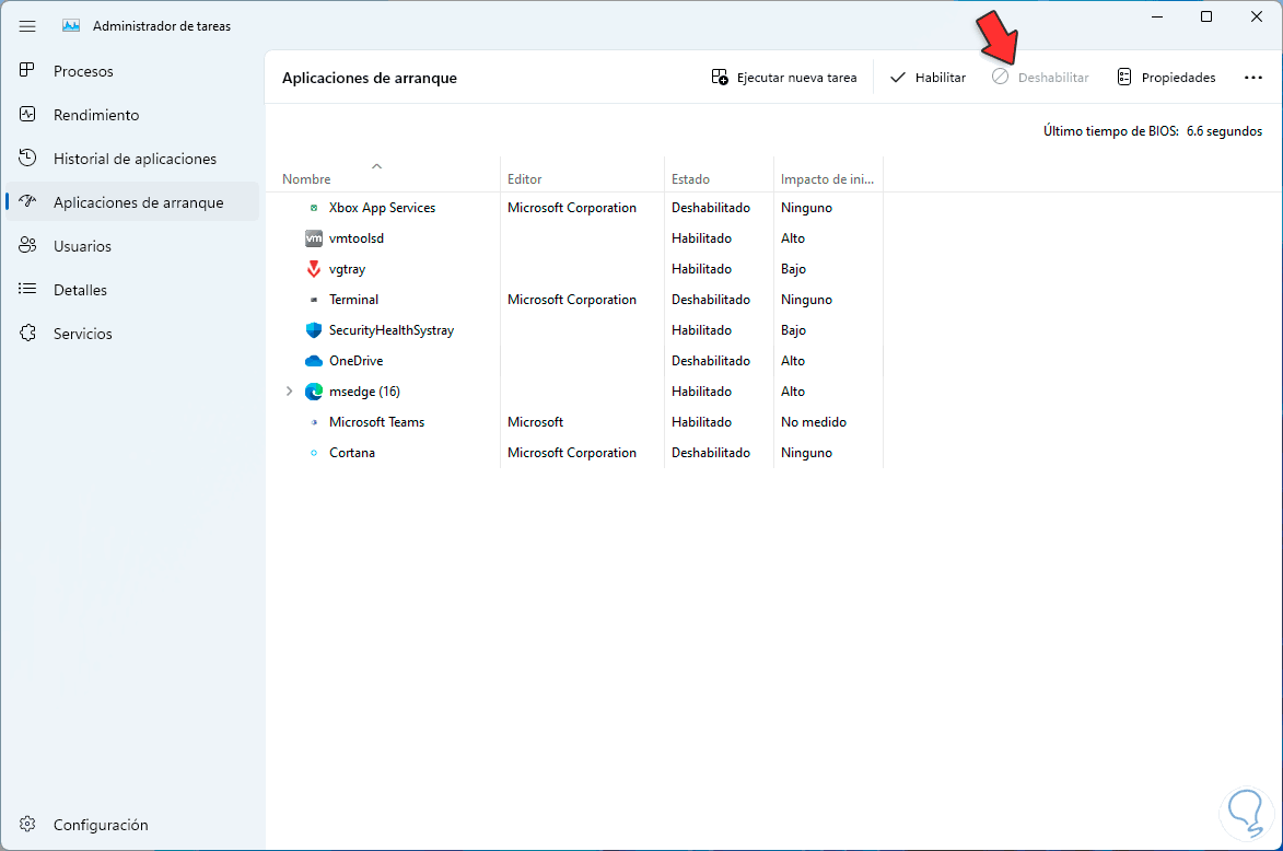 Damos clic en "Deshabilitar":