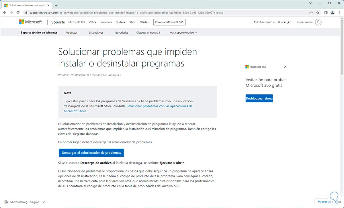 Este es un solucionador diferente al integrado en el sistema ya que lo debemos descargar y como tal nos permite reparar de forma automática los problemas para instalar o eliminar aplicaciones y dentro de sus funciones esta la de corregir las claves del Registro dañadas.