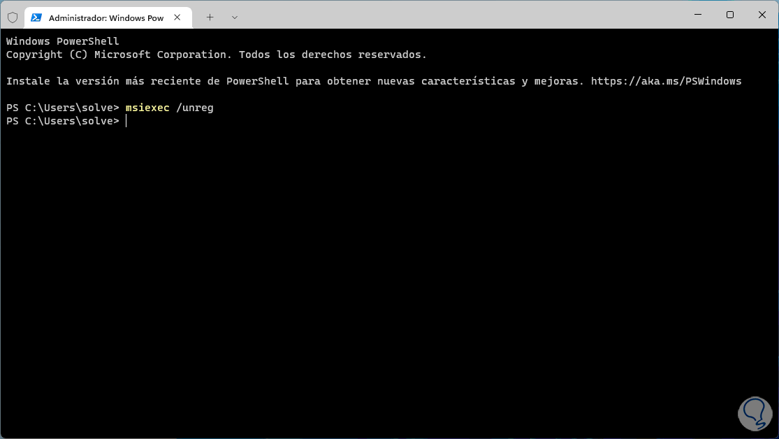 Es posible ejecutar algunos comandos básicos en la terminal para msiexec, este comando cuenta con las opciones para instalar, modificar y realizar operaciones usando Windows Installer desde la línea de comandos.