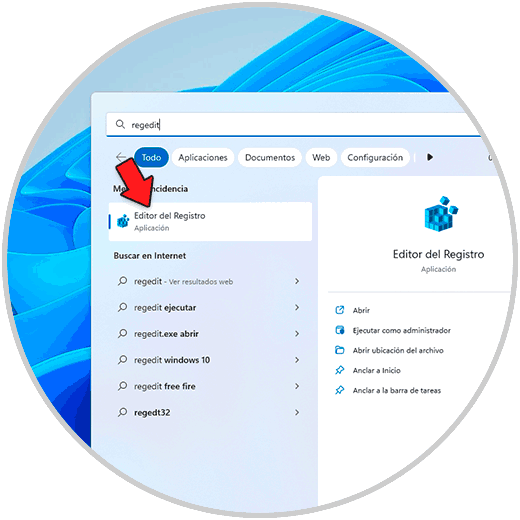 Abrimos el Editor de registros:
