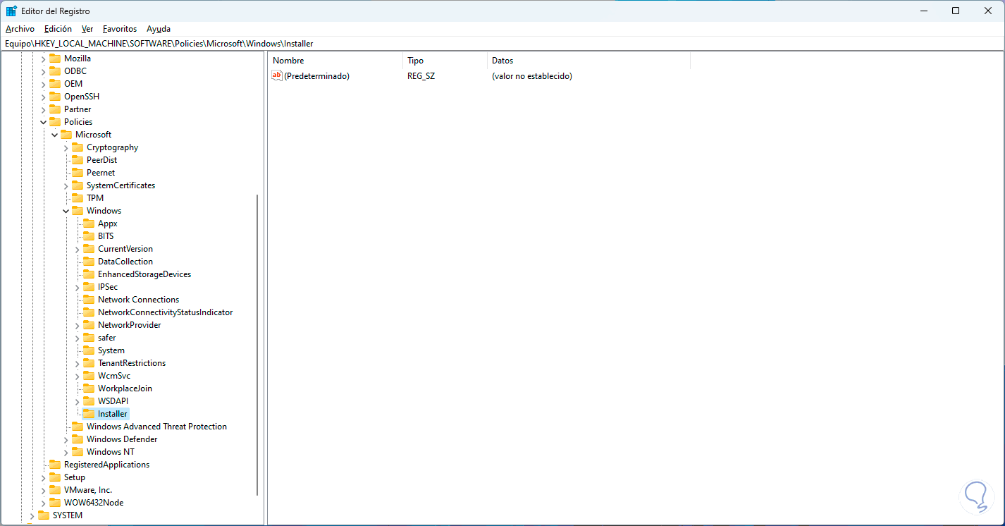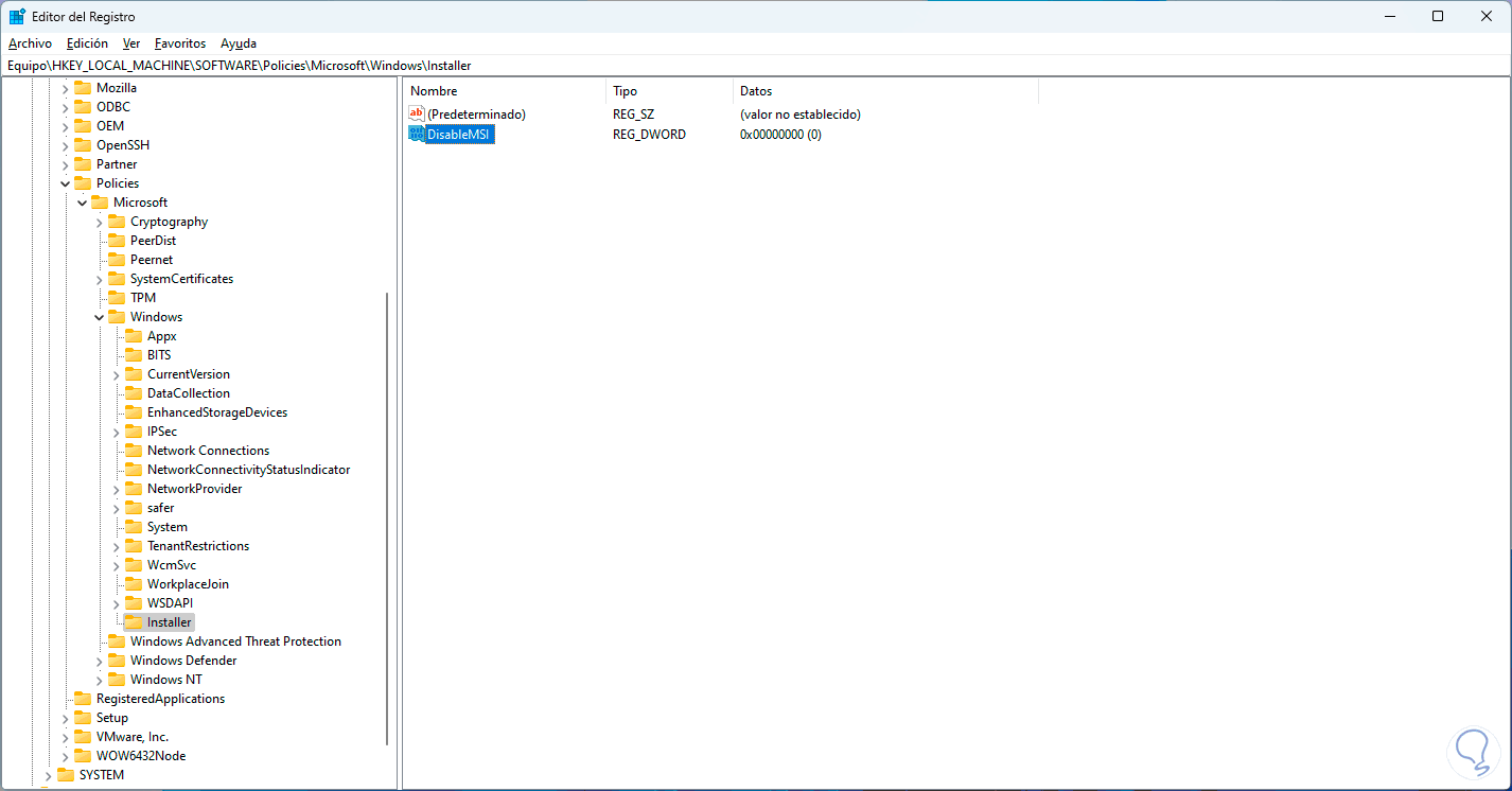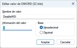 Desde el Editor de registros podemos añadir un nuevo valor para administrar Windows Installer desde MSI.