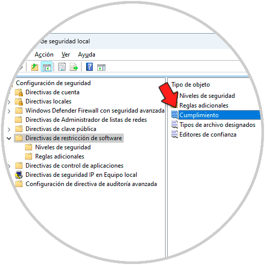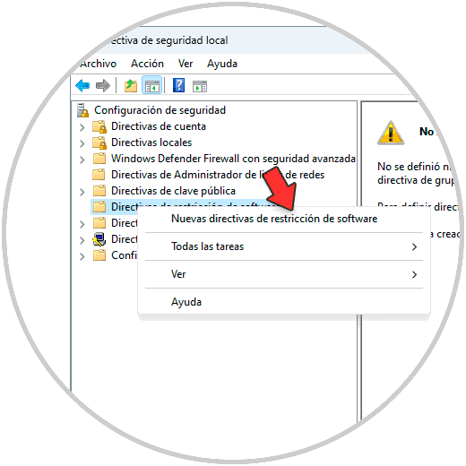 Damos clic en "Directiva de seguridad local", luego damos clic derecho sobre "Directivas de restricción de software", seleccionamos "Nuevas directivas de restricción de software":