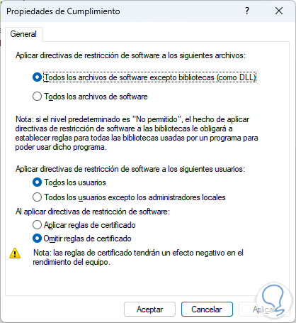 Activamos la casilla "Todos los usuarios excepto los administradores locales":