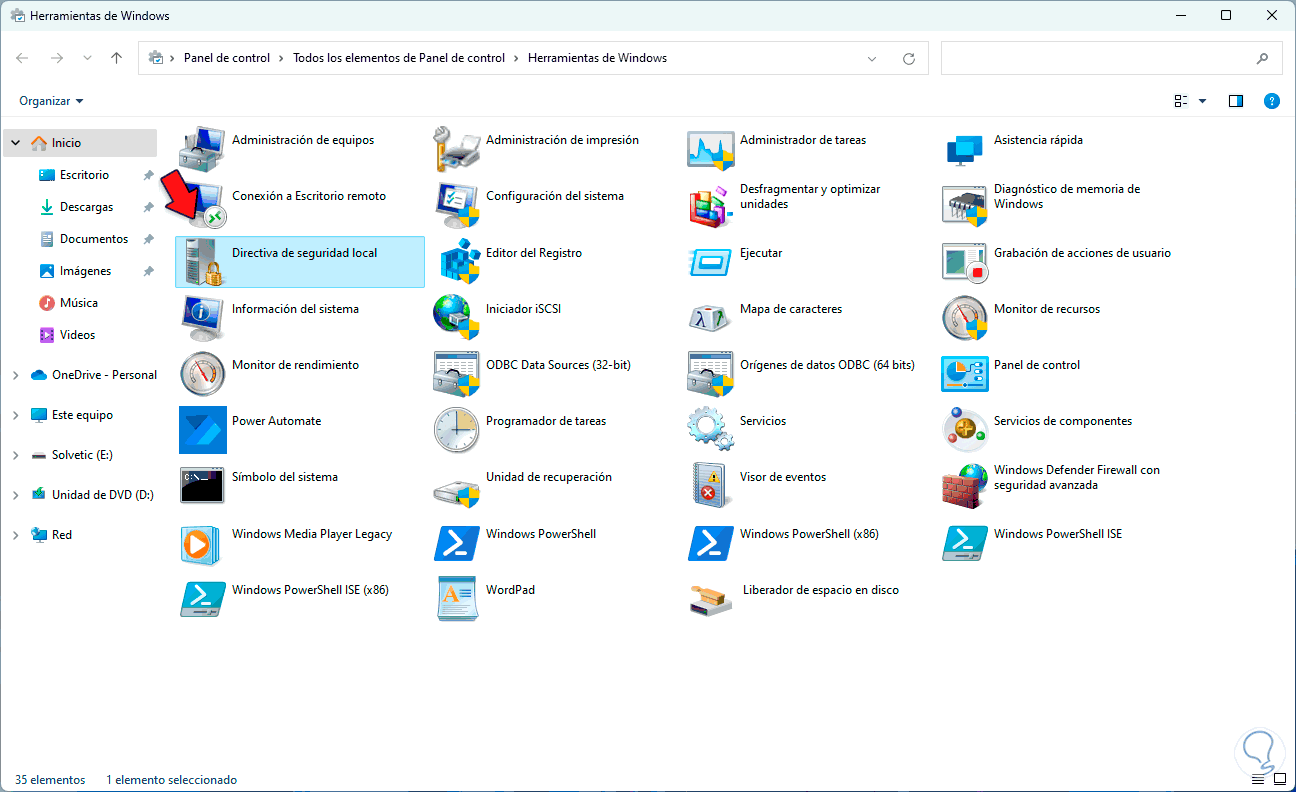 Damos clic en "Herramientas de Windows" y veremos lo siguiente: