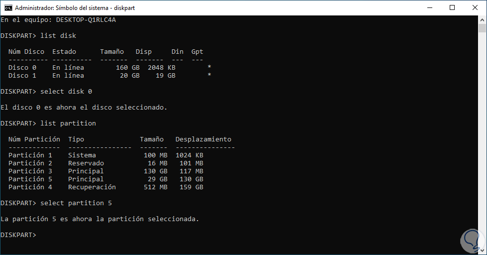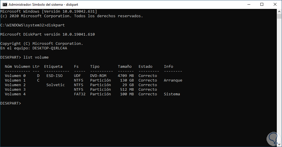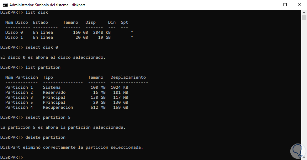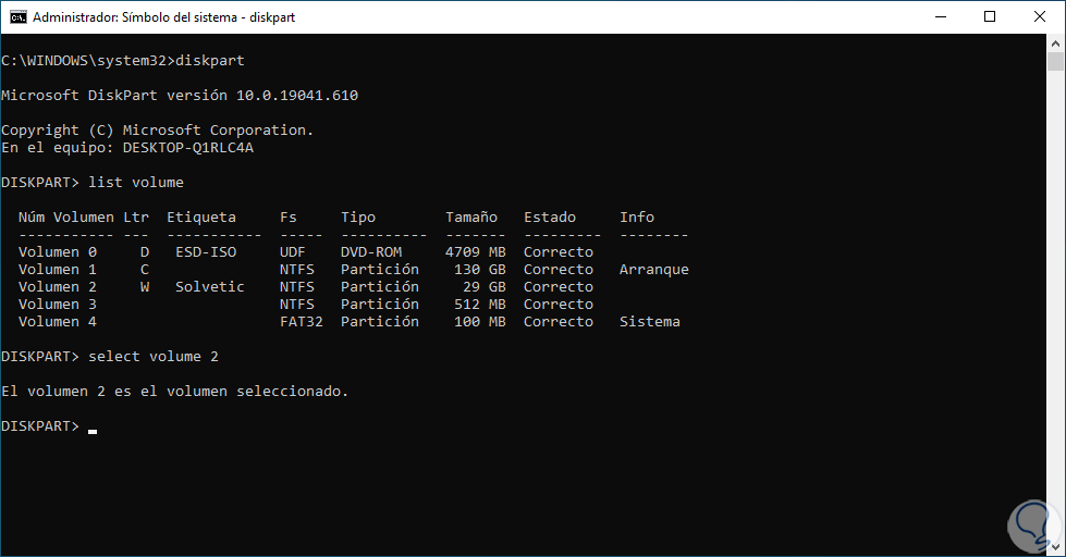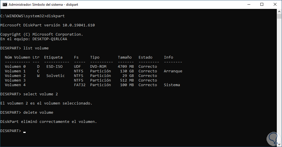 3 Eliminar partición de disco duro Windows 10 desde CMD