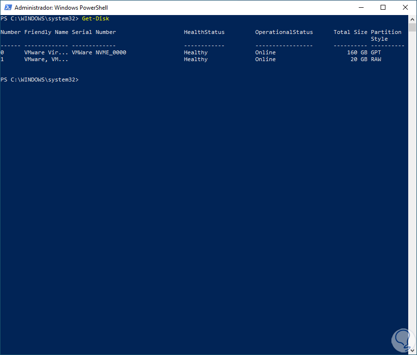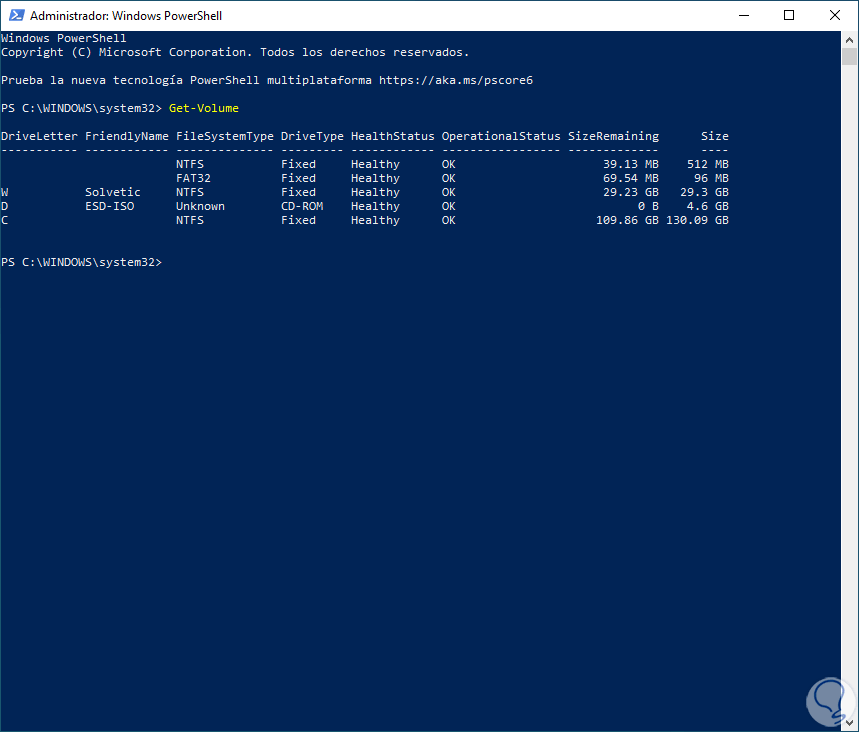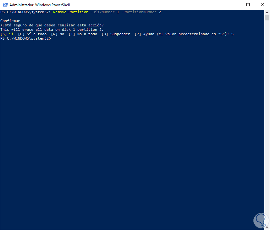 2 Eliminar partición de disco duro Windows 10 desde PowerShell