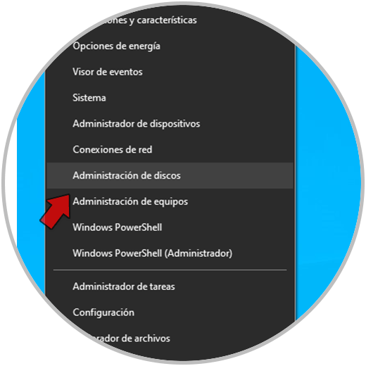 Abrimos el Administrador de discos desde el menú contextual de Inicio: