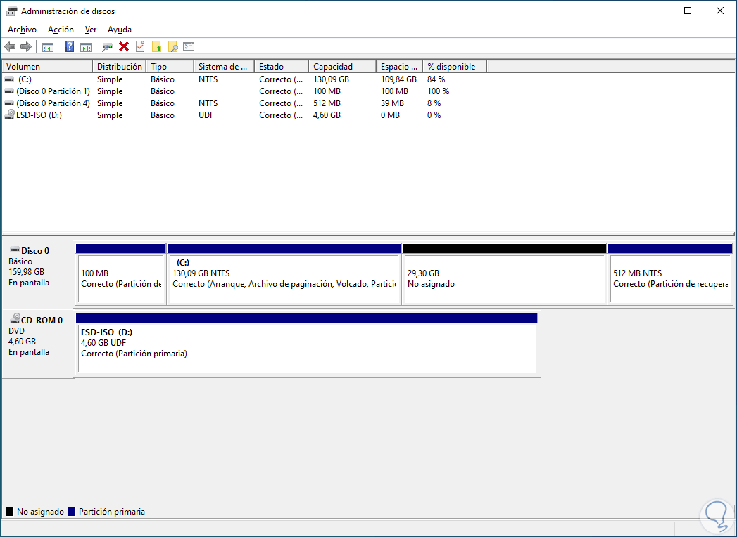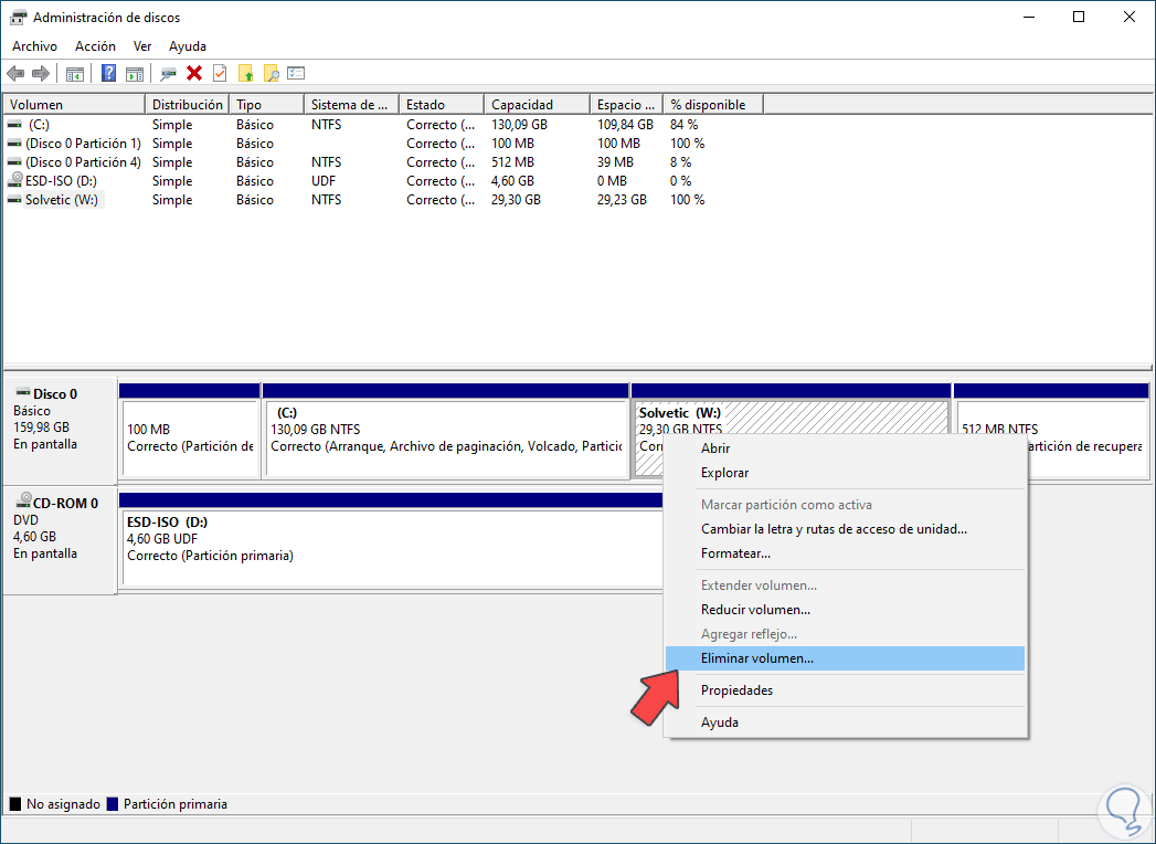 1 Eliminar partición de disco duro Windows 10 desde Administrador de discos
